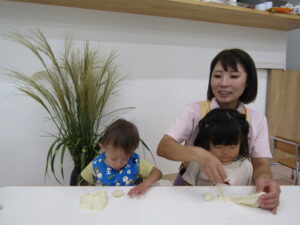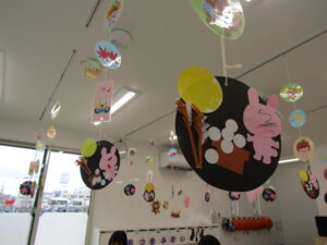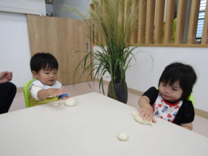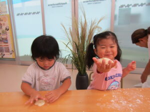 みんなが作った素敵な作品を飾り、小麦粉粘土を使用して