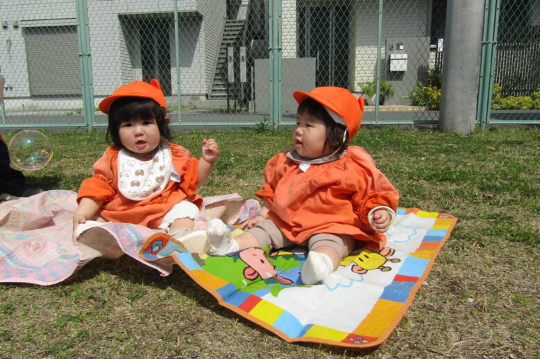 今日はなのはな広場で遊びました。 砂場遊びが人気で、それぞれ好きな玩具を手に取り ご飯を作ったりアイスを作ったり等、集中して遊ぶ姿が見られました。 ちょうちょ組さんは芝生コーナー…