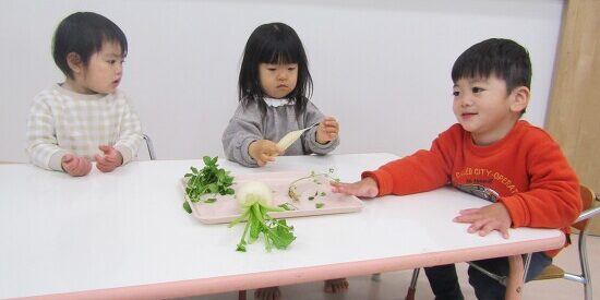 お友達もいました。午後のおやつには実際に七草粥を食べ、