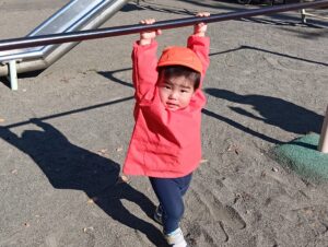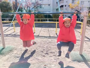 鉄棒も人気で、とんぼ組のお兄さんお姉さんの姿を真似て