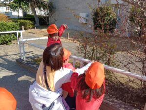 発見すると「あそこにあるよ」「小さいね」と保育者に教えてくれる姿が見られました。