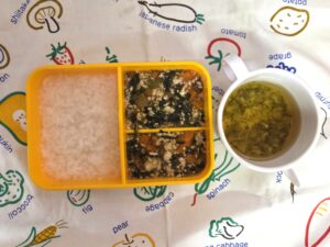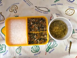 ・野菜そぼろあんかけ風(7倍粥・鶏ひき肉・ほうれん草・人参)